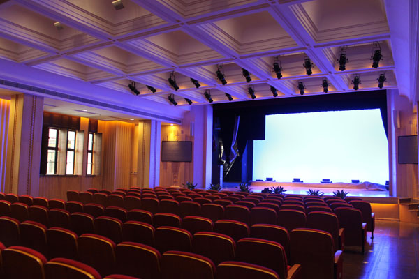 舞臺(tái)機(jī)械方面配置了景幕吊桿,燈光吊桿,側(cè)光吊籠,大幕機(jī)、二幕機(jī)等。